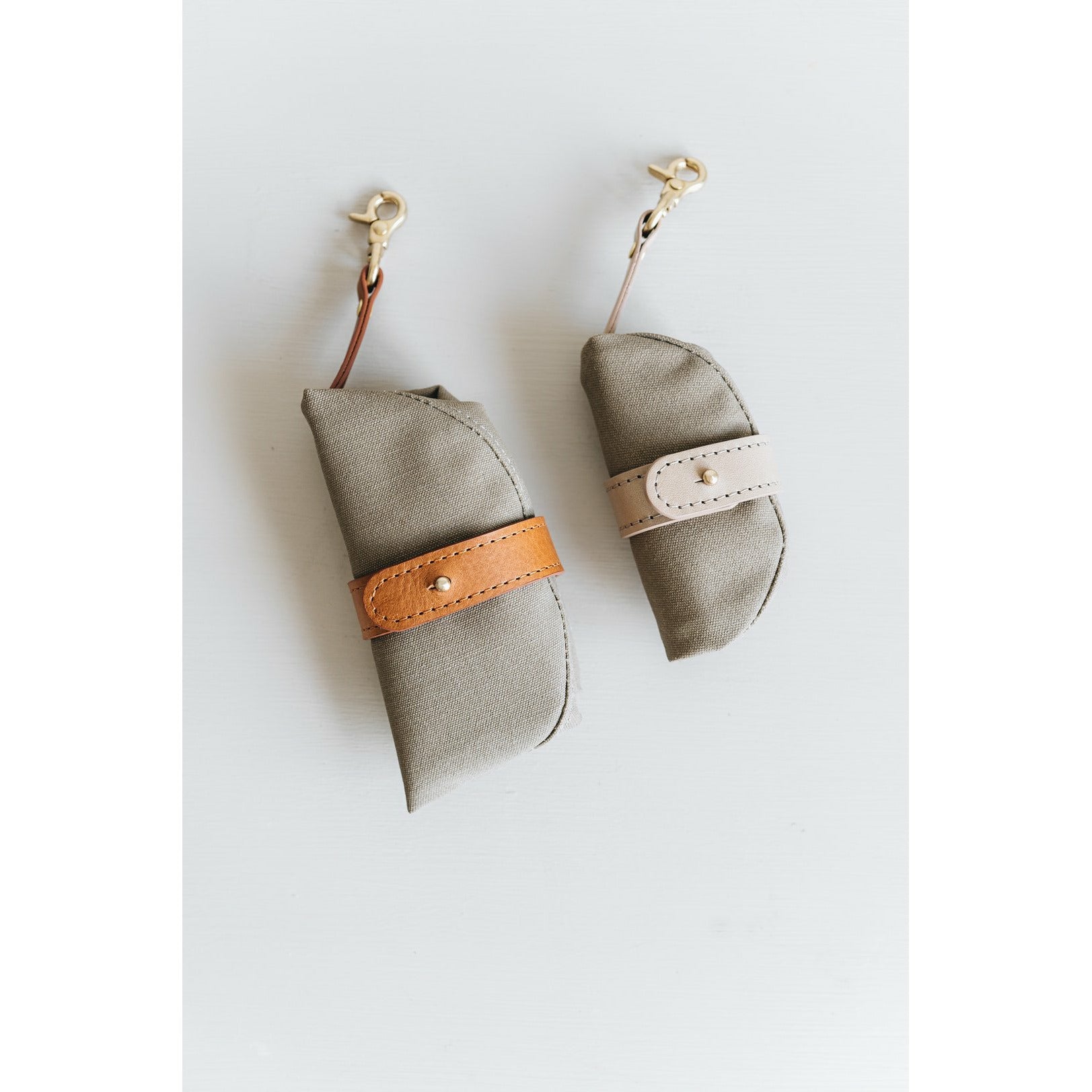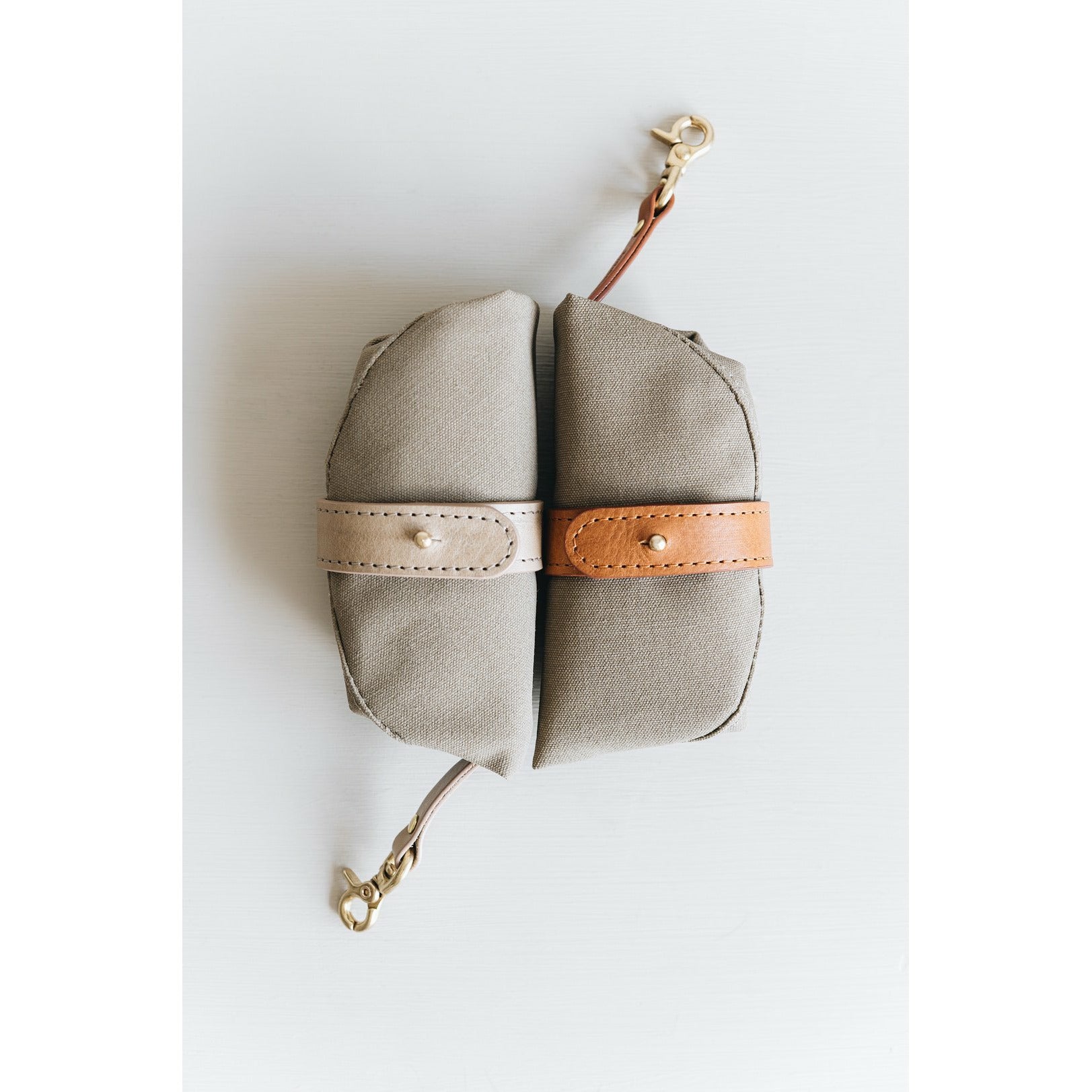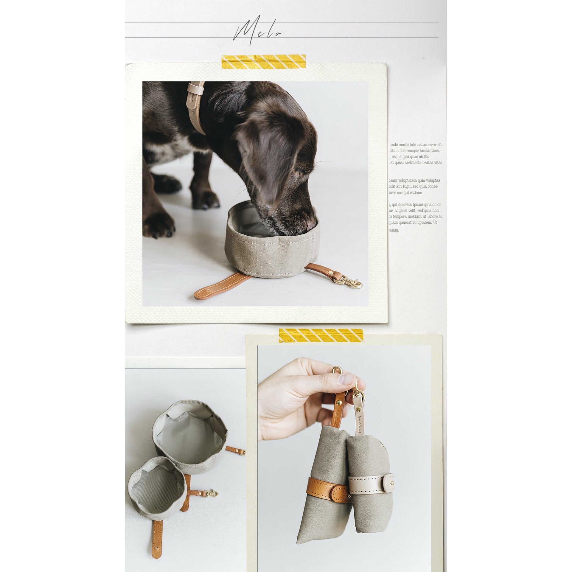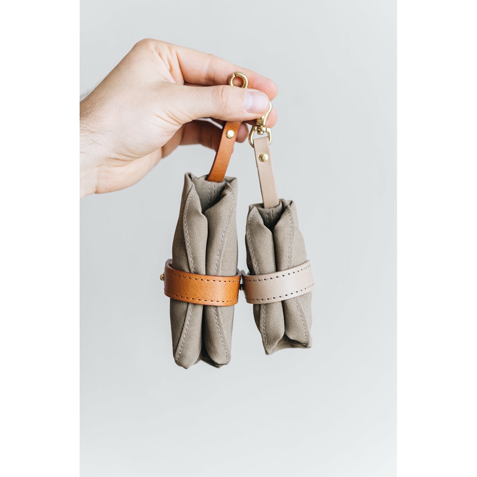 Der faltbare Reisenapf aus gewachstem Canvas mit Lederapplikationen ist handgefertigt in der Familienwerkstatt von band&roll in Berlin.