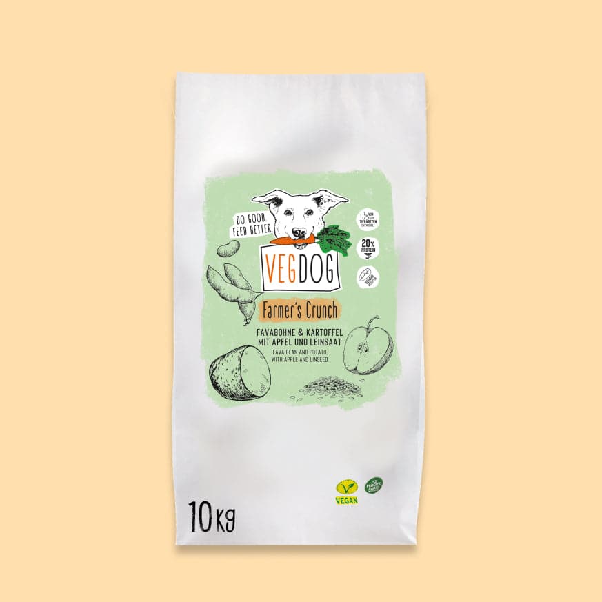 Es ist die vegane Alternative für alle ausgewachsenen Hunde ab zwölf Monaten (je nach Hundegröße und -rasse) und VEGDOG FARMER’S CRUNCH kann problemlos mit dem GREEN CRUNCH abwechselnd gefüttert werden.
