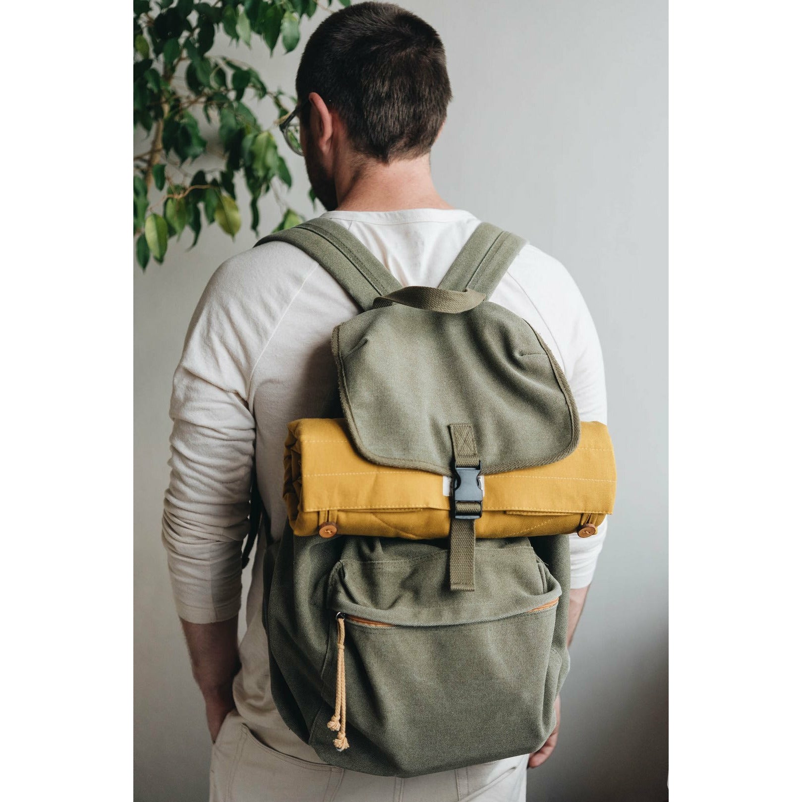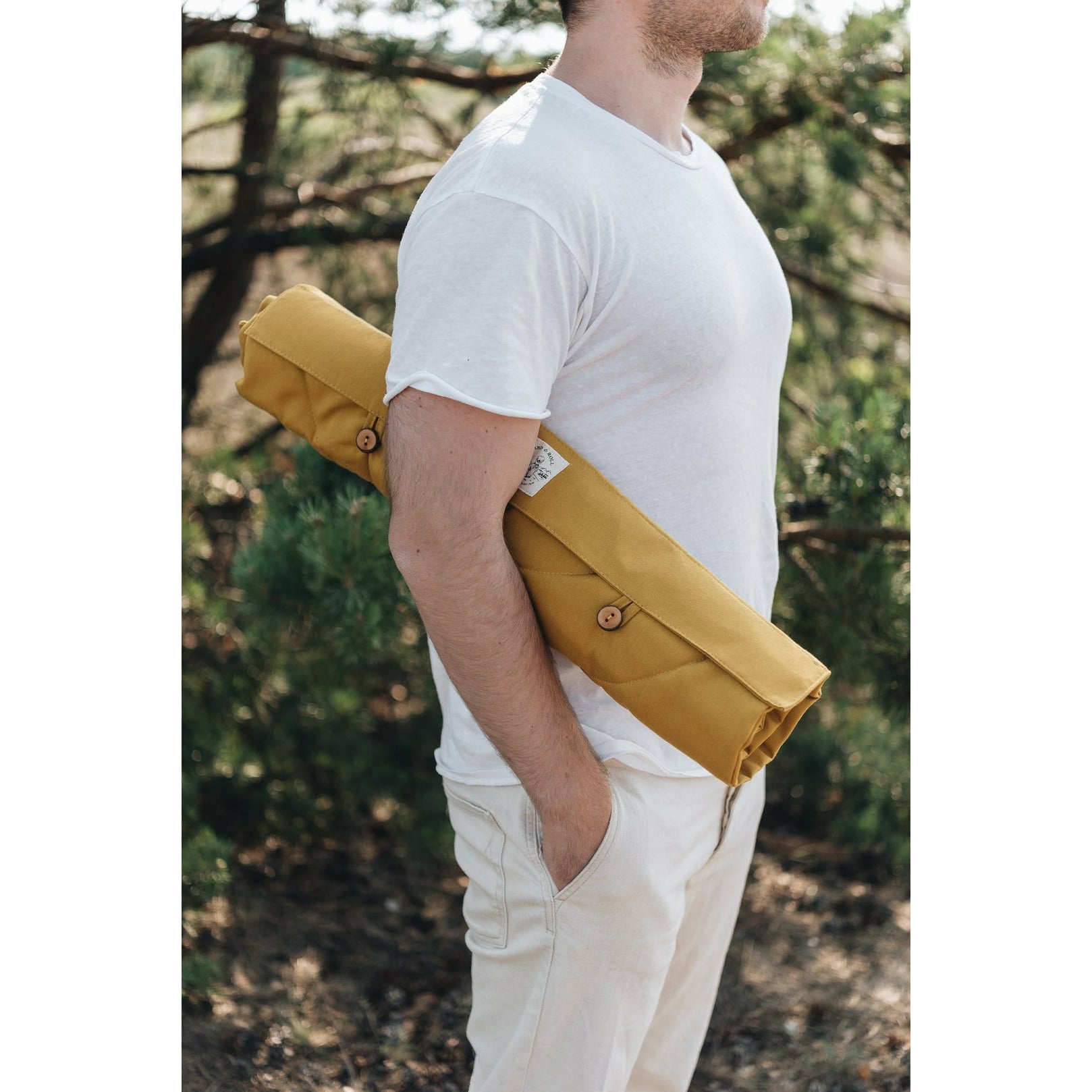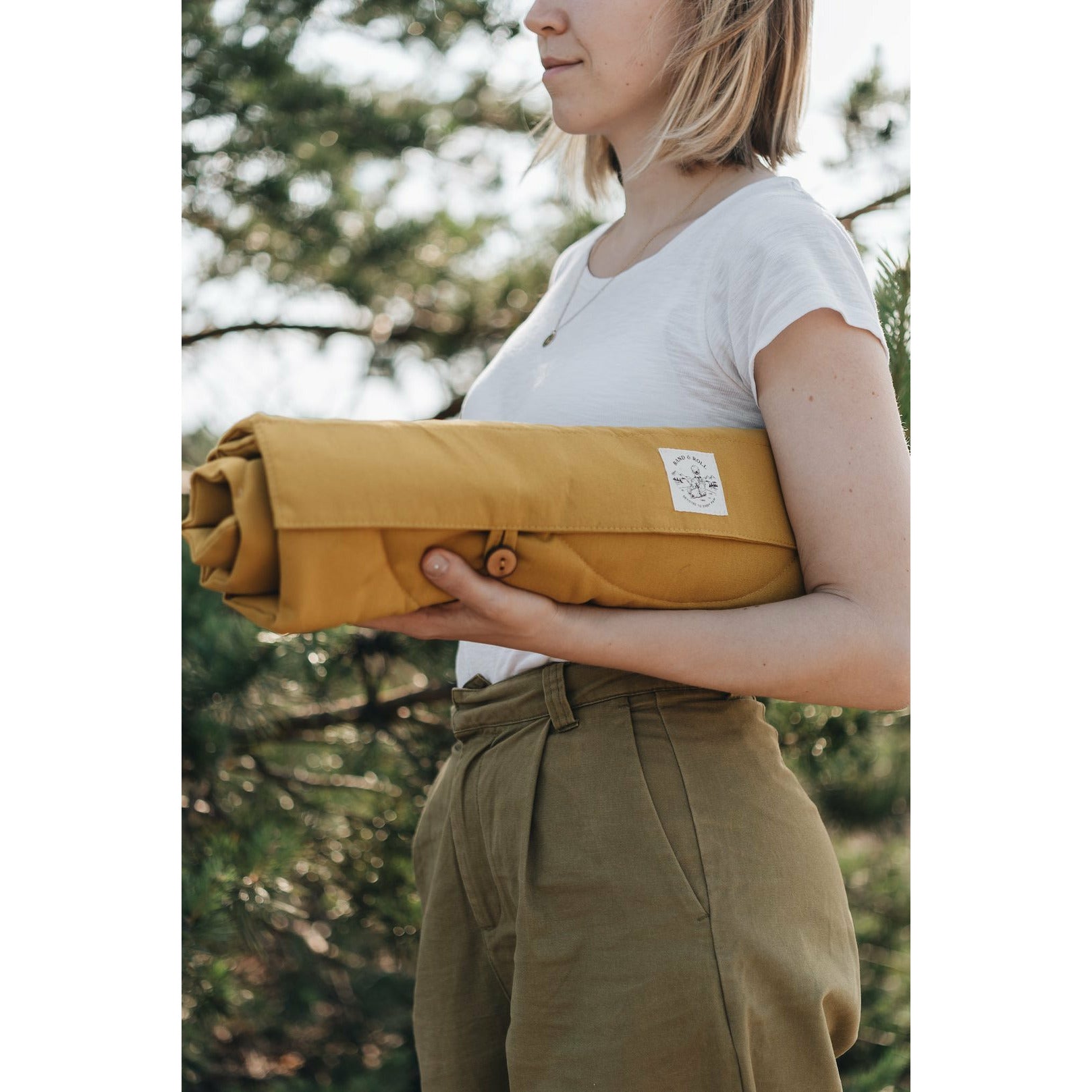 Eine schöne leichte minimalistische Reisedecke, handgefertigt in einer Familienwerkstatt von band&roll in Berlin. Sogar die Knöpfe sind mit viel Liebe handgefertigt.