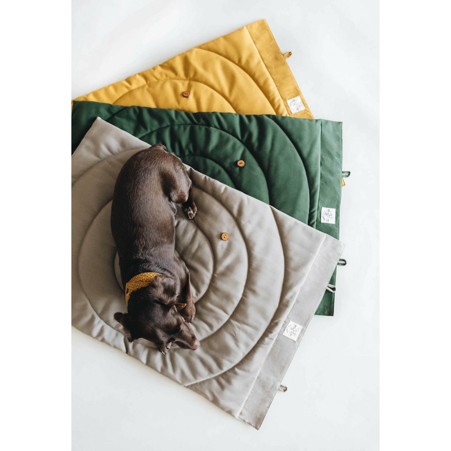 Die Reisedecke ist wasser- und schmutzabweisend und lässt sich leicht reinigen, damit ihr entspannt und stressfrei unterwegs seid. Die ist zusammengerollt super tragbar und kann mit zwei Pflaumenholzknöpfen geschlossen werden. Die gesteppte Liegefläche ist beidseitig weich und anschmiegsam und bietet Ihrer Lieblingspfote einen kuscheligen Platz zum Ausruhen.